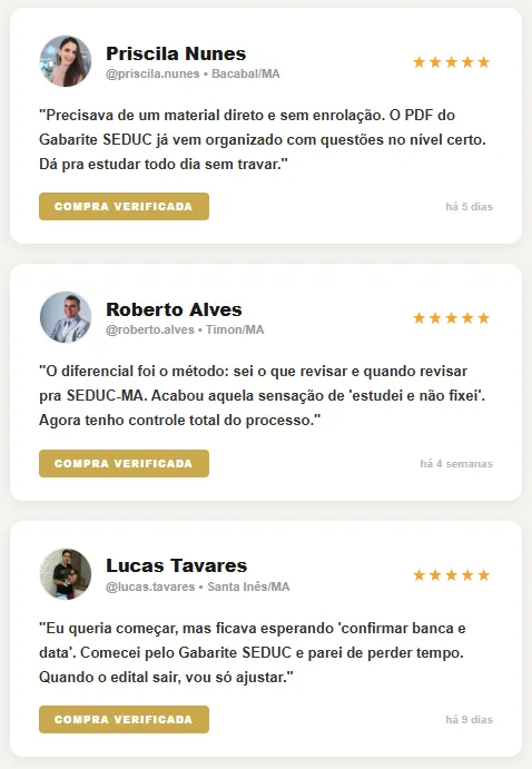 Sim! O Gabarite SEDUC-MA – Teoria e Questões foi criado exclusivamente a partir do padrão dos concursos da educação, garantindo que você estude apenas o que realmente será cobrado.